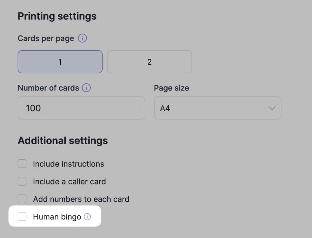 The new printing design with preview feature introduces a streamlined, user-friendly interface for printing your bingo cards. This update includes a print preview function, allowing you to see exactly how your cards will look before you print them.
