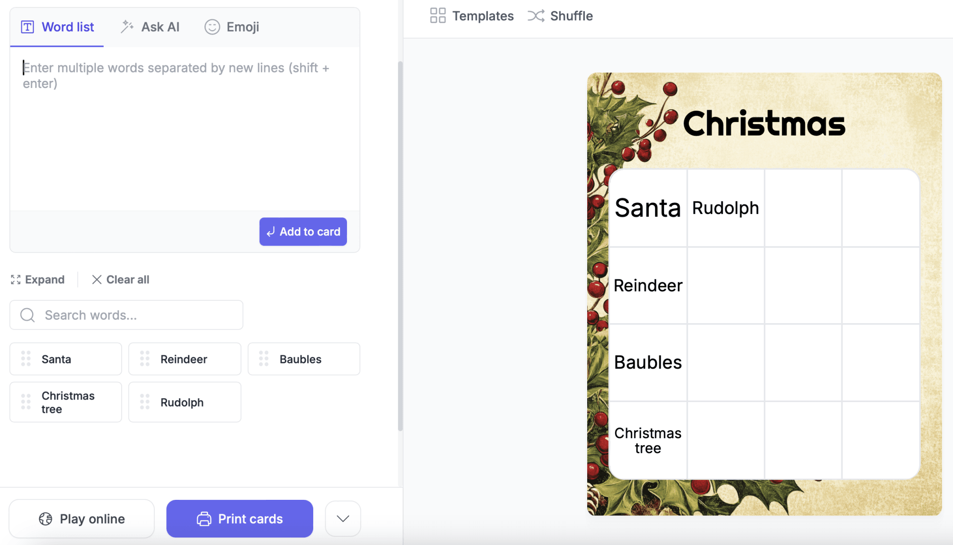 If creating Christmas bingo cards from scratch feels like too much work, we’ve got you covered. Our Christmas bingo templates make it easy to get started with professionally designed cards featuring festive holiday themes.