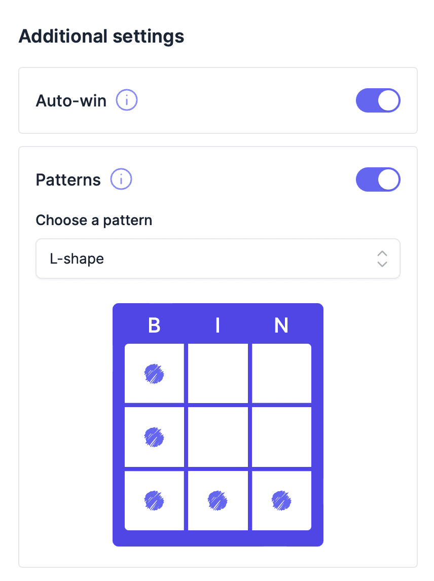 Tailor your bingo experience with additional settings. From selecting winning patterns to customizing marker styles and themes, you have the power to personalize the game for your audience.