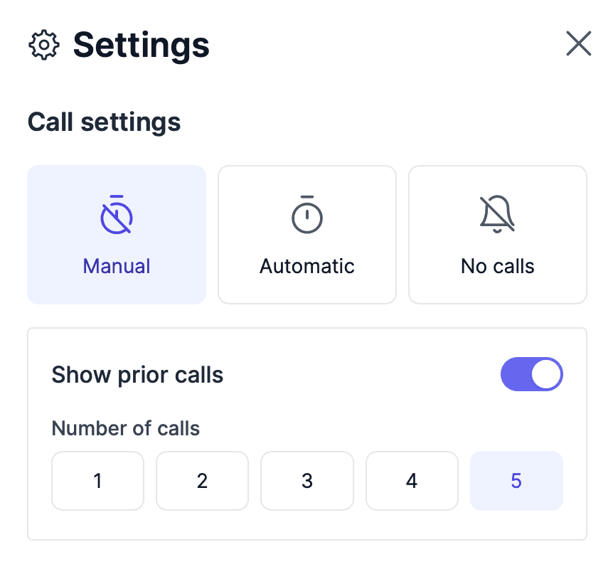 • Automatic: Let the system automatically make calls for you at a set pace.