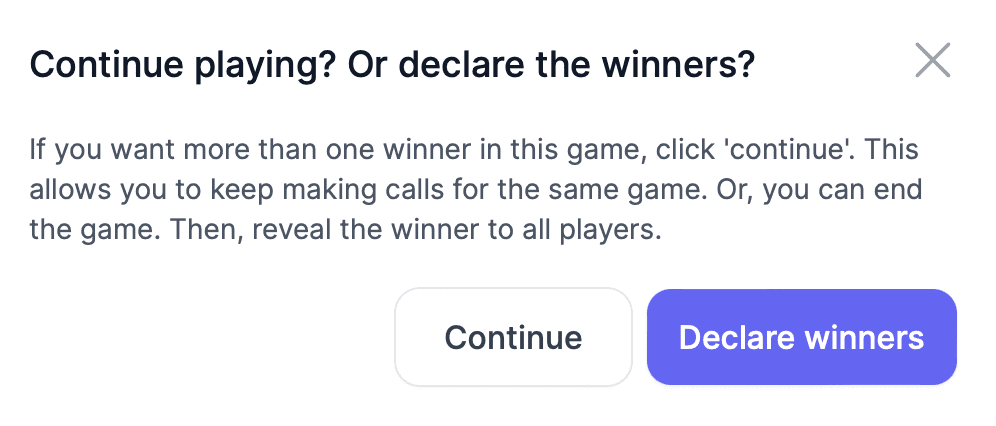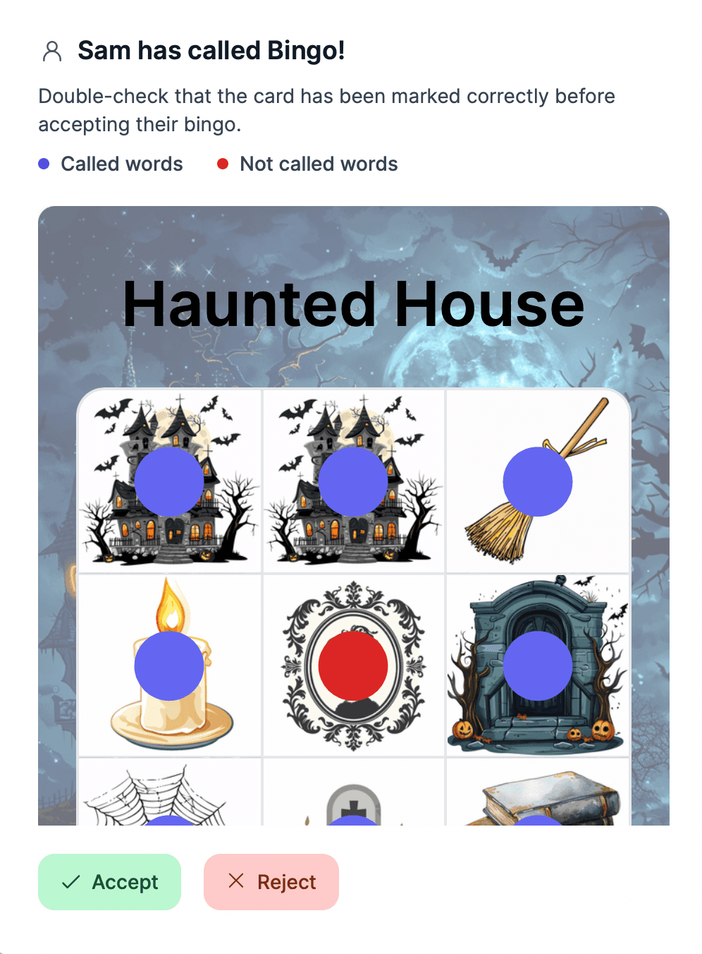 At the moment when a player believes they've clinched victory, they can hit the bingo icon to announce their potential win. This action triggers an immediate response for you, the caller, presenting a pivotal decision point in the game. Here's a quick guide on what comes next: