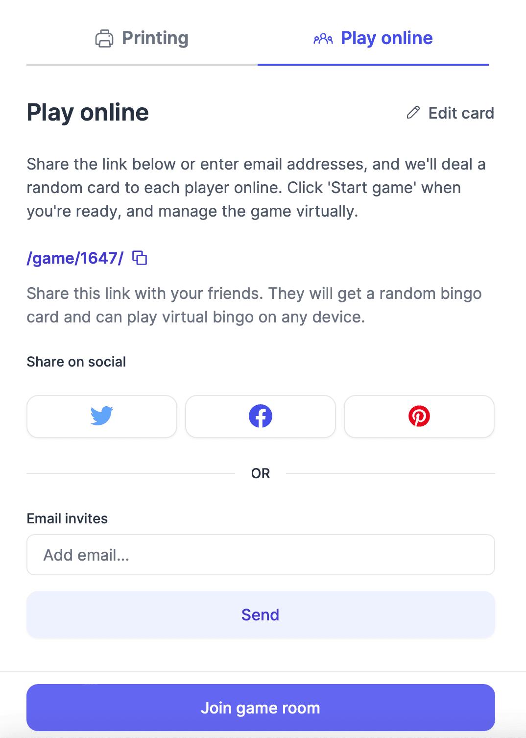 By tailoring these settings, you create a more engaging and personalized bingo experience. Whether it’s a laid-back game night or a competitive scramble, these options let you adjust the gameplay to match your group's vibe. Ready to start the fun? Set up your game, share it with your friends, and enjoy the thrill of bingo!