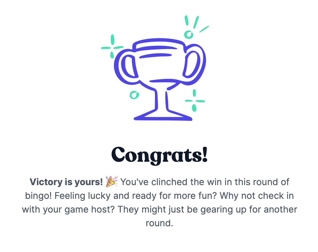 Once a brand new game begins, players receive a brand-new bingo card and are notified with an alert that they can rejoin the game for another chance to win.